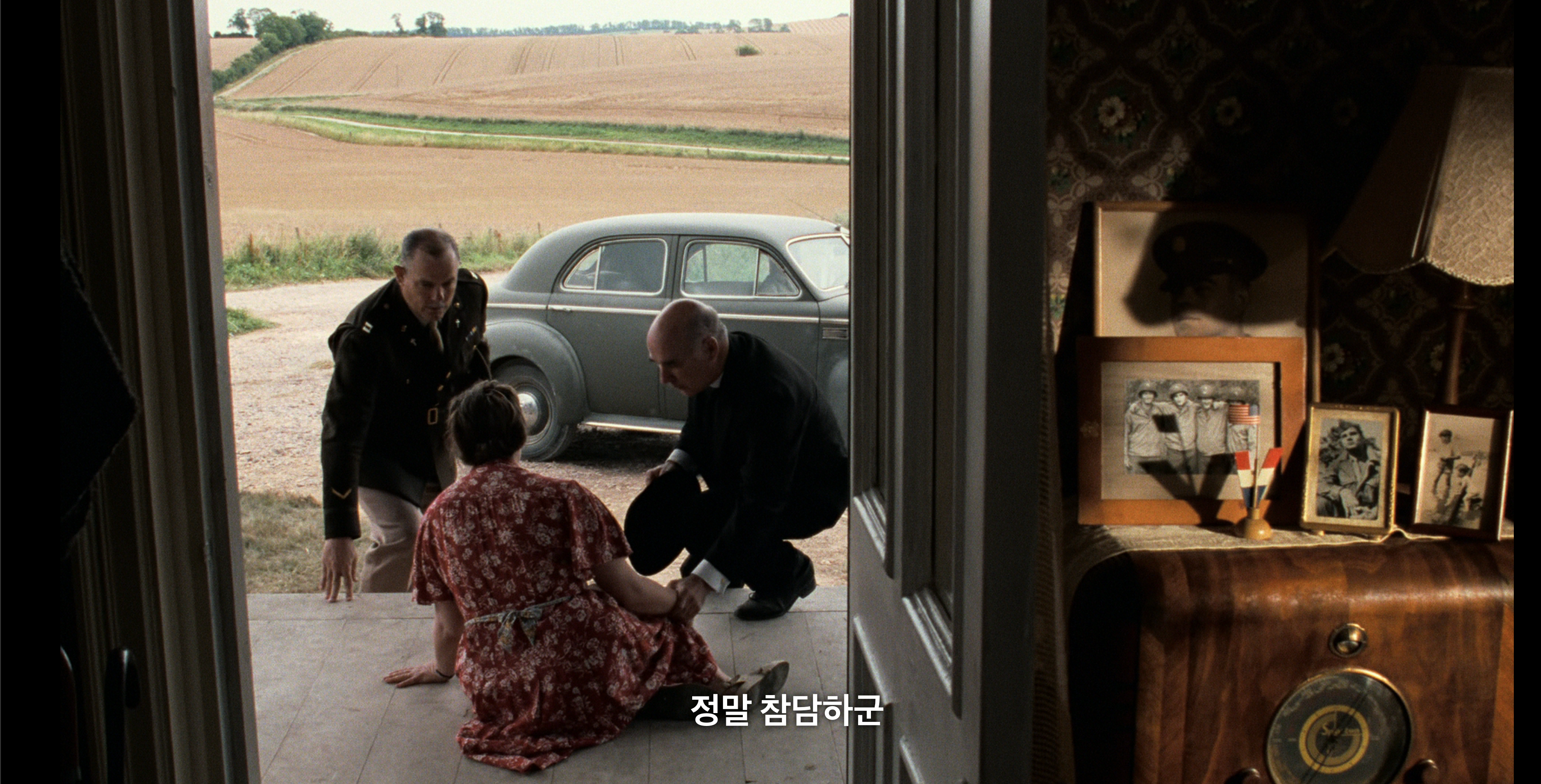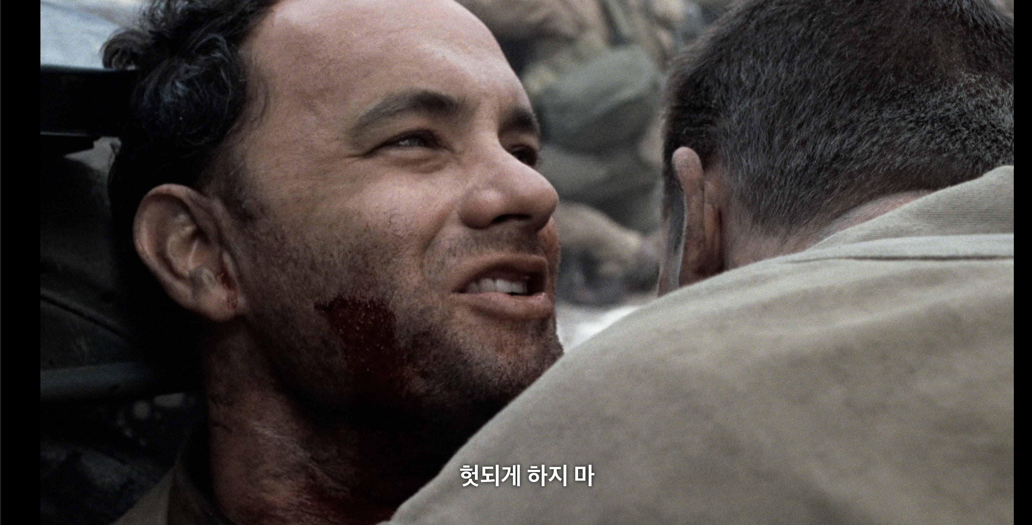 드디어 첫 라이언 등장. 처음엔 사실 진짜 찾고있는 라이언이 아니라는 것을 모르고 봤지만, 형제가 모두 죽었다는 소식을 듣고 우는 모습에 많이 실망을 했다. 톰행크스 연기에 감탄하며 보는 와중, 저 막중한 역할과 장면에서 저렇게 밖에 감정표현을 못하나? 싶어서 탄식을 하던 찰나, 진짜 라이언이 아니었다. 다행이라는 마음으로 진짜 라이언을 기다렸다.
