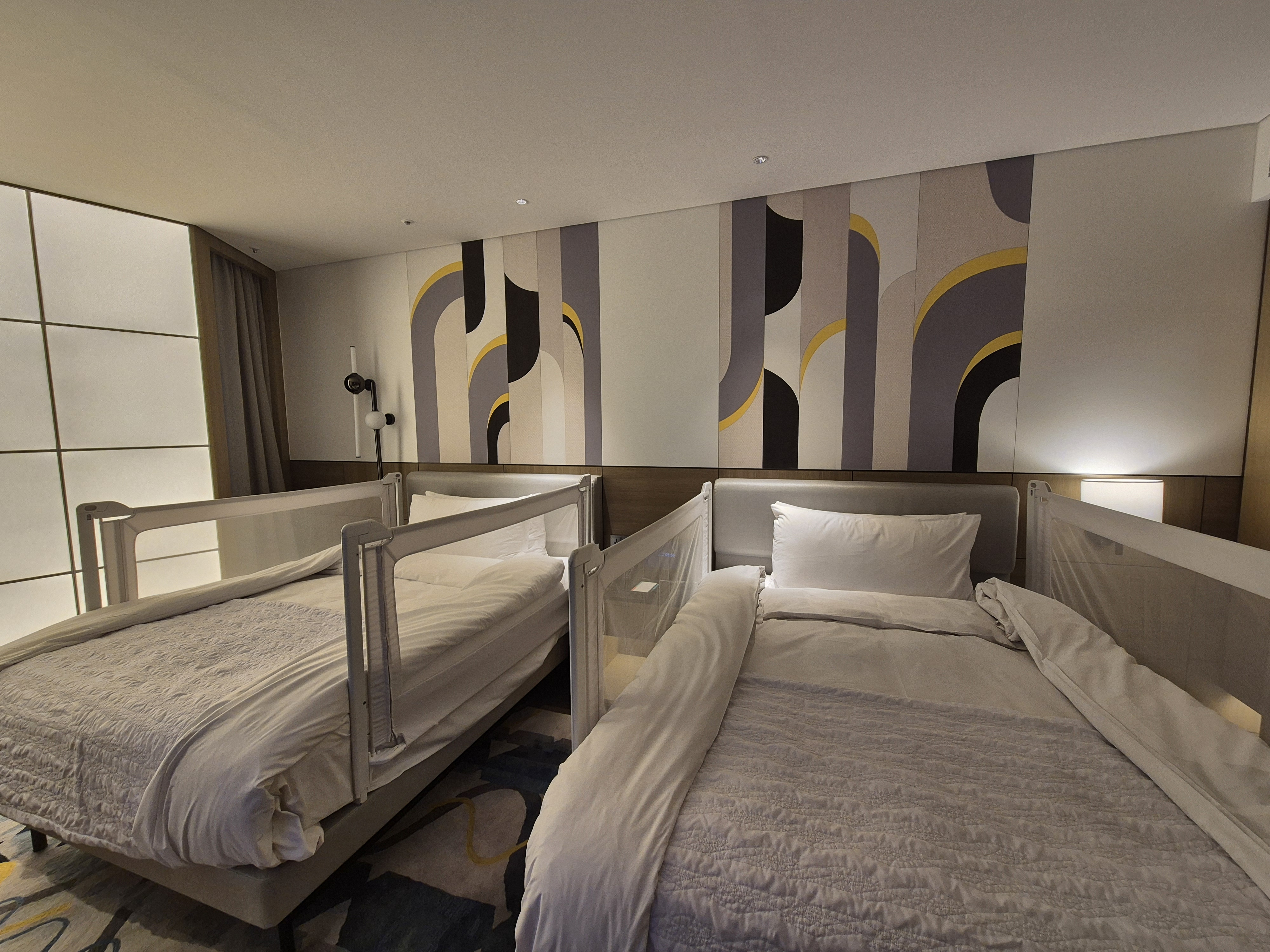 보통 호텔은 객실마다 베이비가드를 하나정도만 해주는데 그러면 안낀 다른쪽으로 떨어질까봐 걱정인데 여기는 각각의 면에 두개침대 모두 설치해주셨다ㅠㅠ 감동